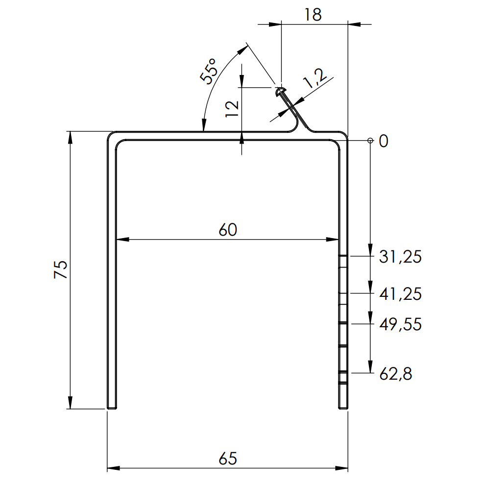- Abstand Schenkel zu Schenkel: 60 mm