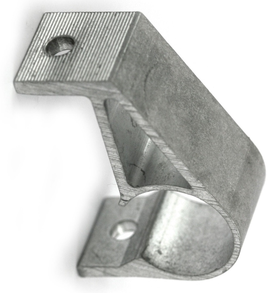 La abrazadera de placa conecta barras de empuje de 27 mm con los tubos de 19 mm o los perfiles de screen que guían la tela.