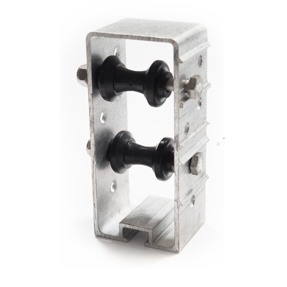 El cuerpo de rodillos universal es una solución versátil para el soporte de varillas de empuje en ventilaciones de invernaderos. Gracias a su robusta construcción en aluminio y a los rodillos diabolo de plástico de alta calidad, proporciona una guía duradera y fiable de las varillas de empuje.