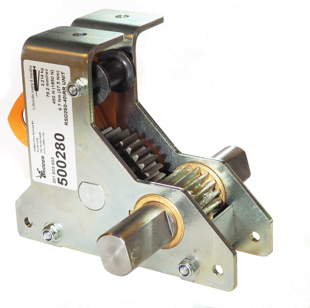 La Carcasa de piñón Ridder RSD 250-40 RR sirve como accionamiento reductor para instalaciones de sombreado con accionamiento por varillas. La disposición estándar de las pestañas de montaje en el lado derecho permite un montaje especialmente compacto en el viguero.