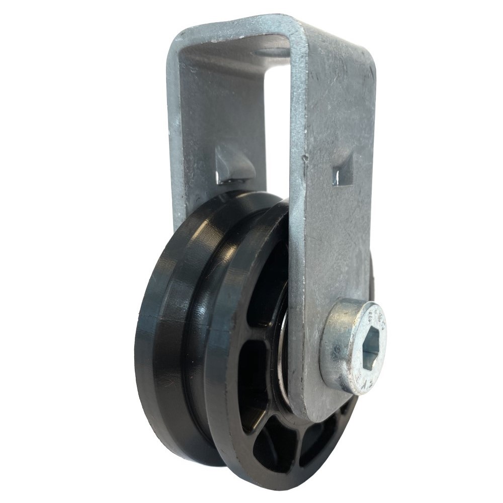 Grazie ai due cuscinetti a sfera integrati la carrucola da 52 mm è guidata con particolare sicurezza sull'asse e presenta un'elevata stabilità alle sollecitazioni di taglio.